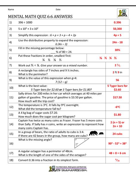 Mental Maths Tests Year 6 Worksheets from www.math-salamanders.com
