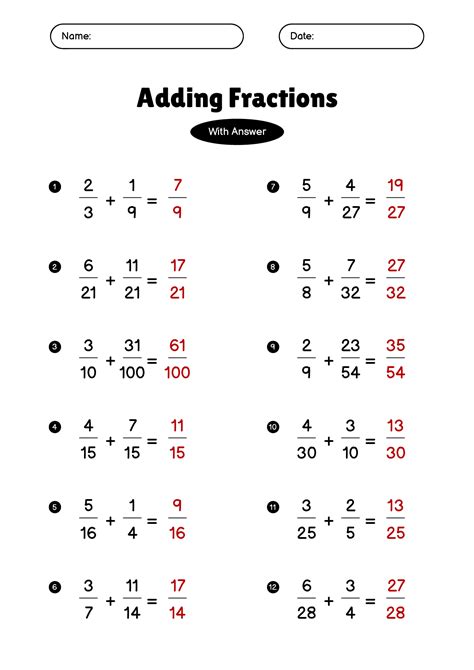 Adding Fractions With Answer Key. Fractions worksheet with answer key printable pdf download. These grade 6 fractions worksheets focus on adding and subtracting fractions and mixed numbers with unlike denominators.