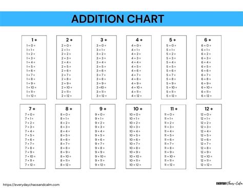 Use these free addition charts and worksheets at home or at school to help kids. Award winning educational materials designed to help kids succeed. These flashcards start at 0 + 0 and end at 12 + 12.