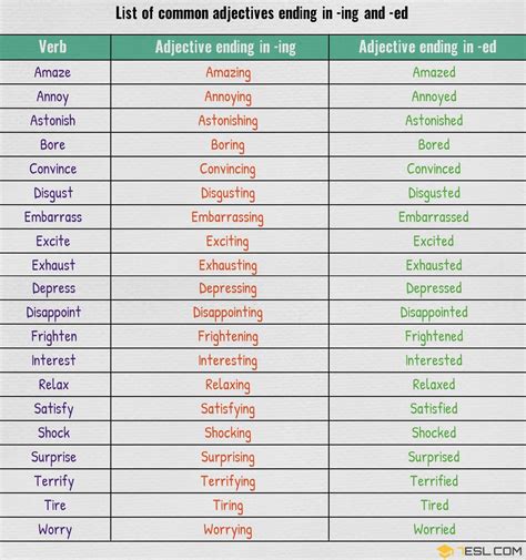 I was so bored in that lesson, i almost fell asleep. Physical work is very tiring, it makes me feel tired. The list of adjectives given can be used for speaking purposes.