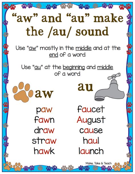 Help students remember that the letters au and aw can make the same. Aw and au words worksheet. First grade, second grade, and third grade, phonics books, activities, and videos from the same page.